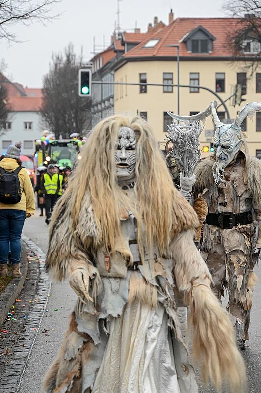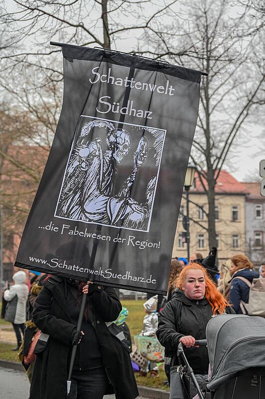 Zum ersten Mal waren in unserem Umzug die schaurigen Gestalten der "Schattenwelt Südharz" zu bestaunen. Die Mitglieder des Vereins haben es sich zur Aufgabe gemacht den regionalen Sagen- und Mythengestalten ein Gesicht zu geben - alle Masken sind selbst und von Hand hergestellt.