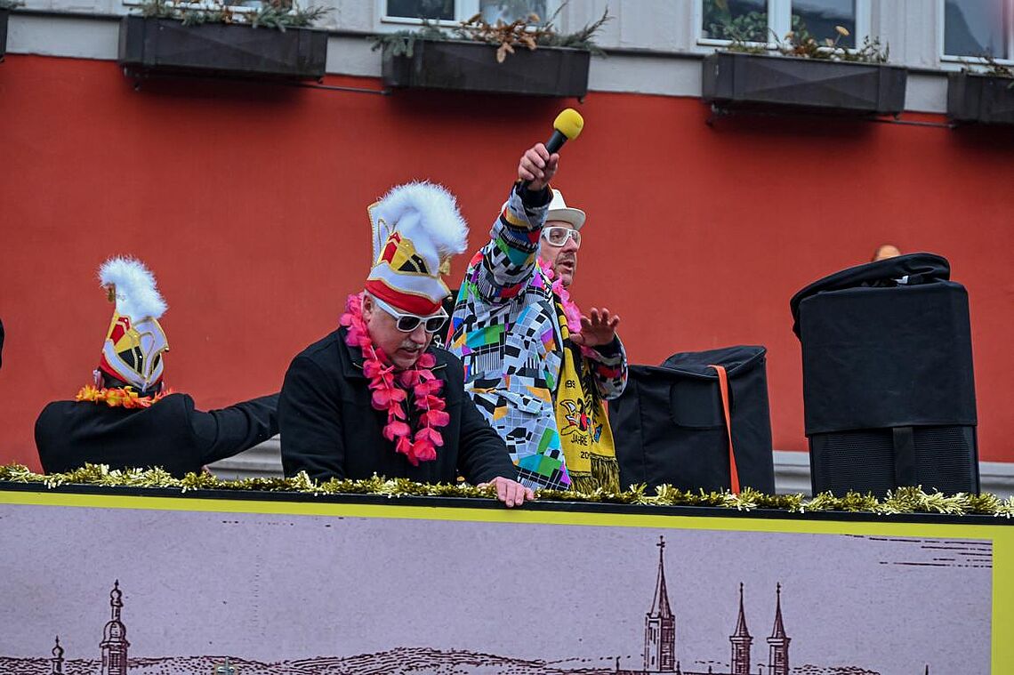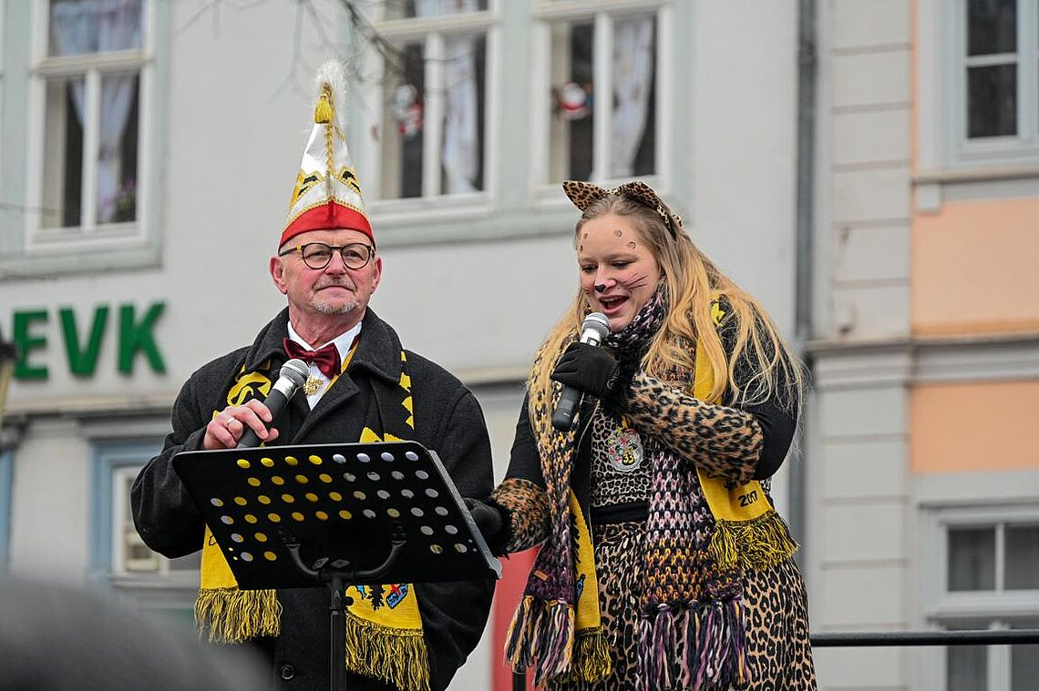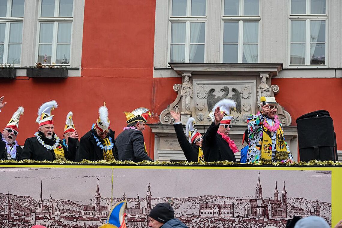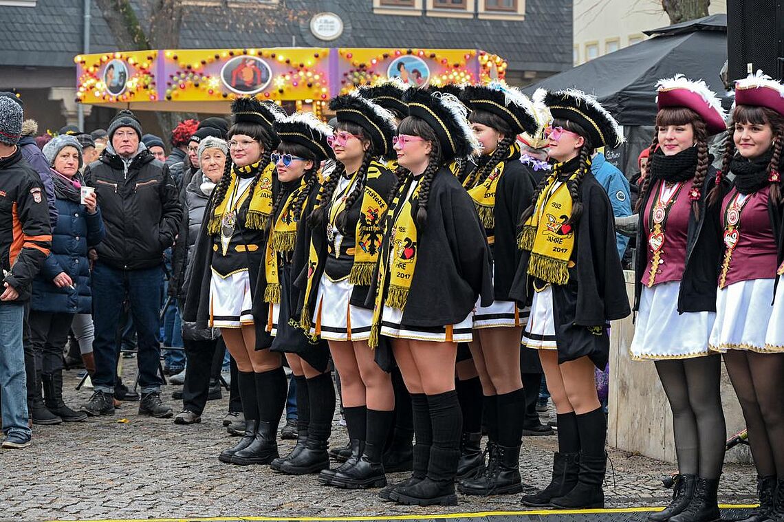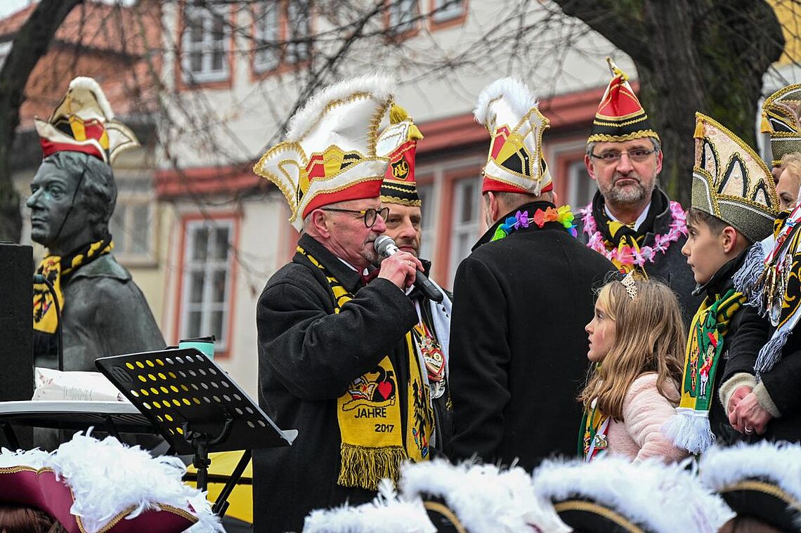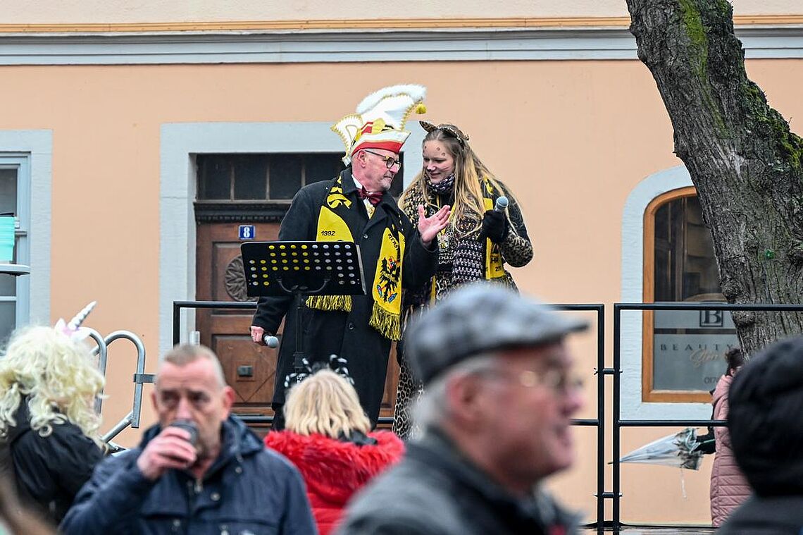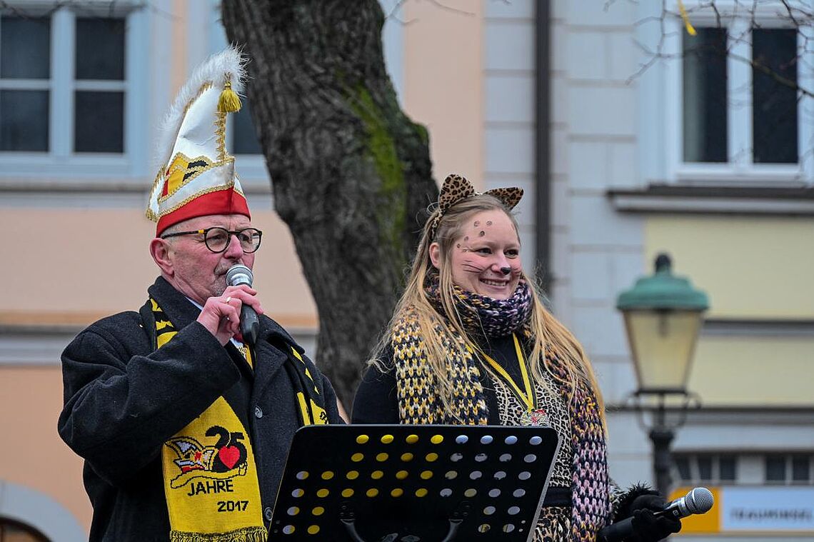 Im Anschluss an den Narrenzug gab es ein karnevalistisches Feuerwerk der guten Laune und des Frohsinns auf dem Arnschter Marktplatz.