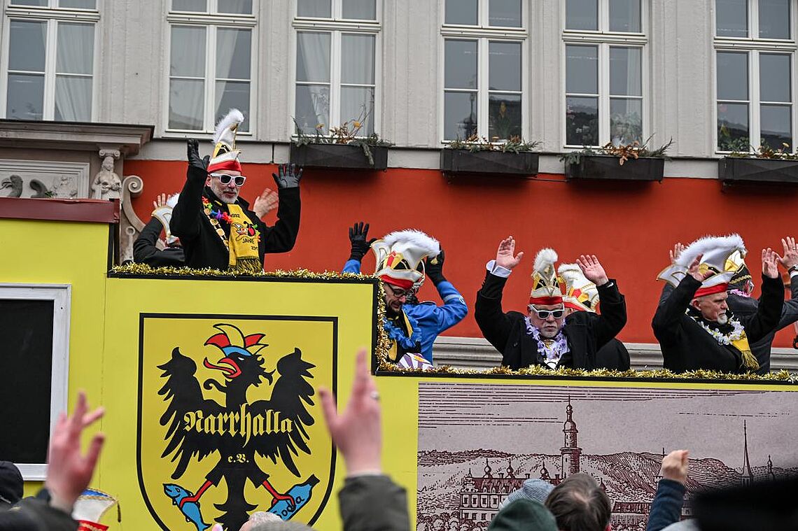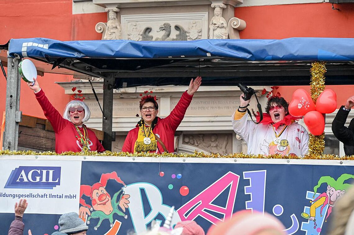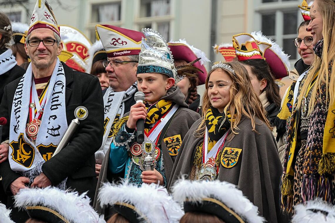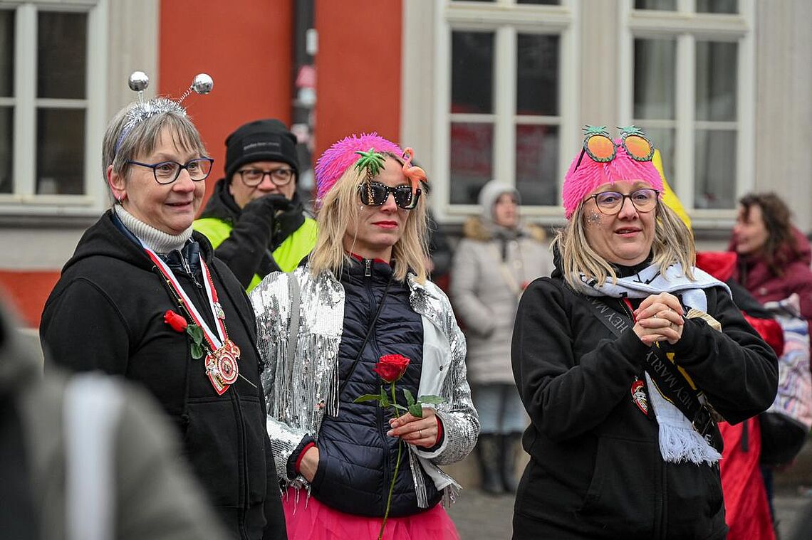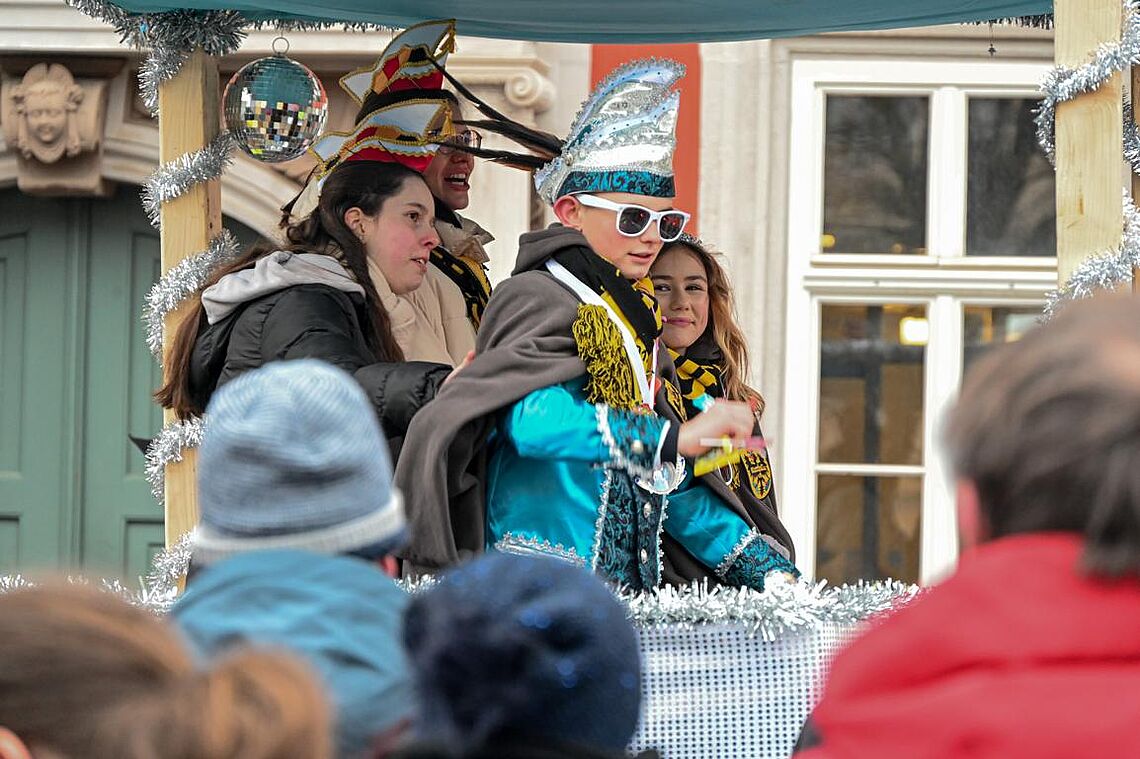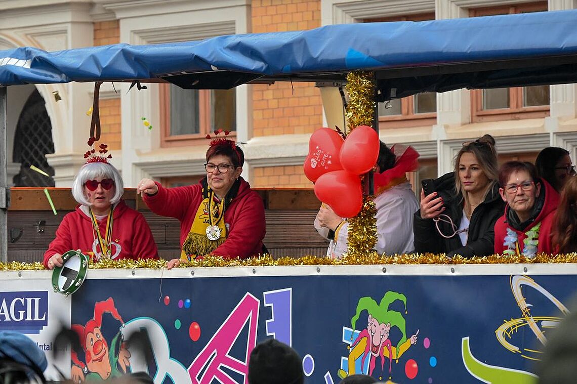 Im Anschluss an den Narrenzug gab es ein karnevalistisches Feuerwerk der guten Laune und des Frohsinns auf dem Arnschter Marktplatz.