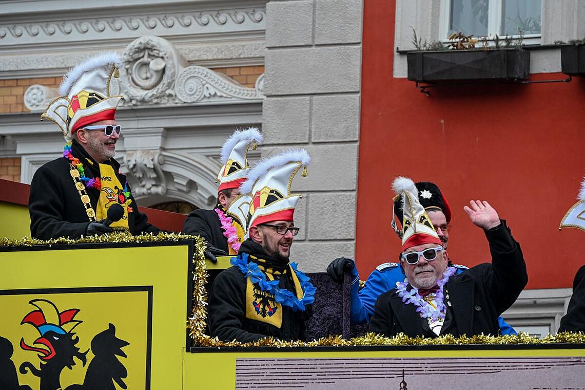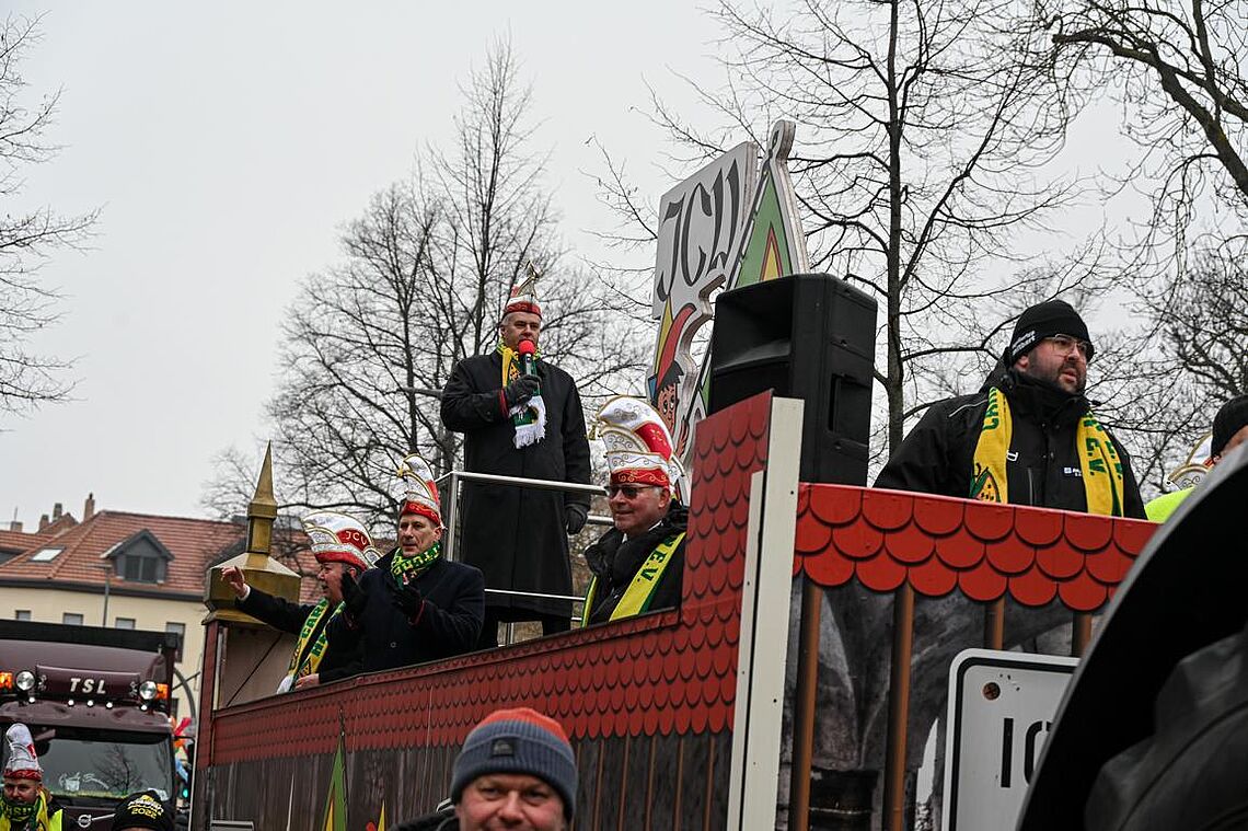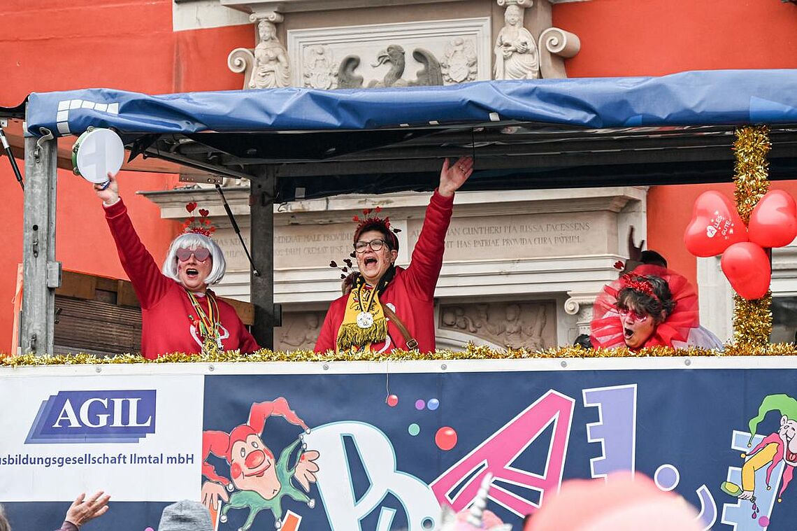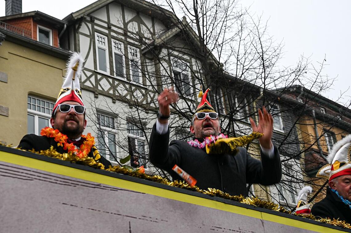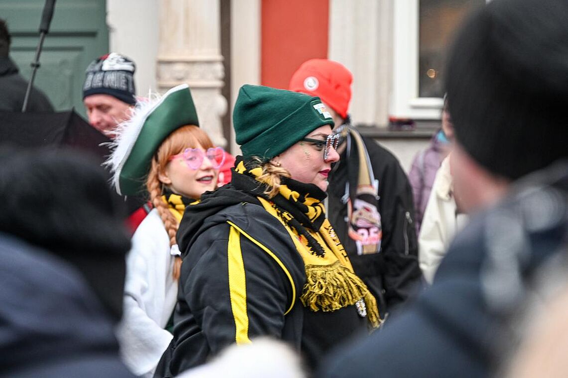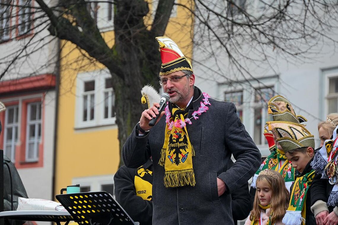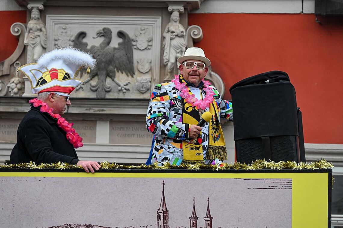 Im Anschluss an den Narrenzug gab es ein karnevalistisches Feuerwerk der guten Laune und des Frohsinns auf dem Arnschter Marktplatz.