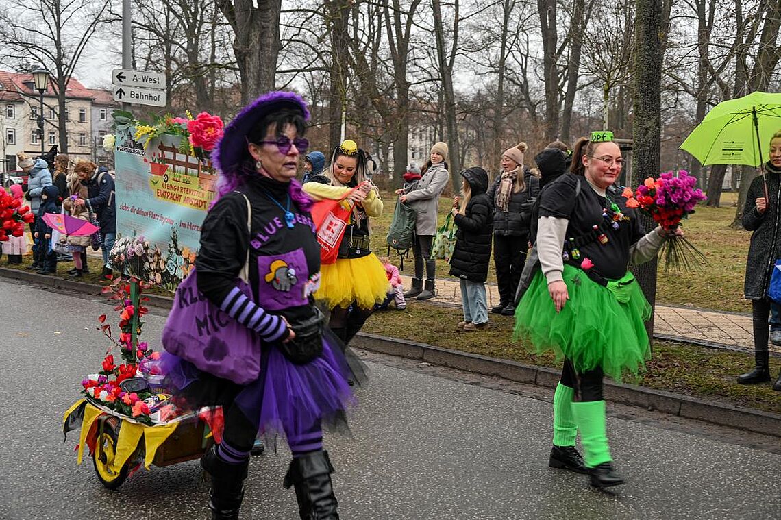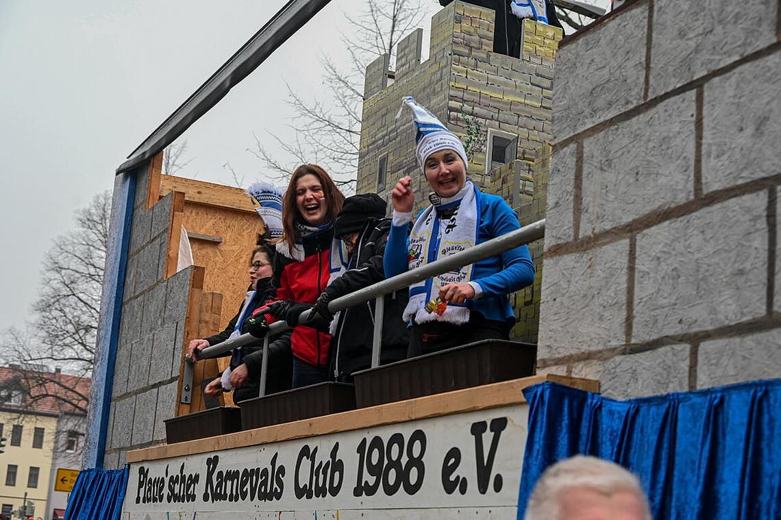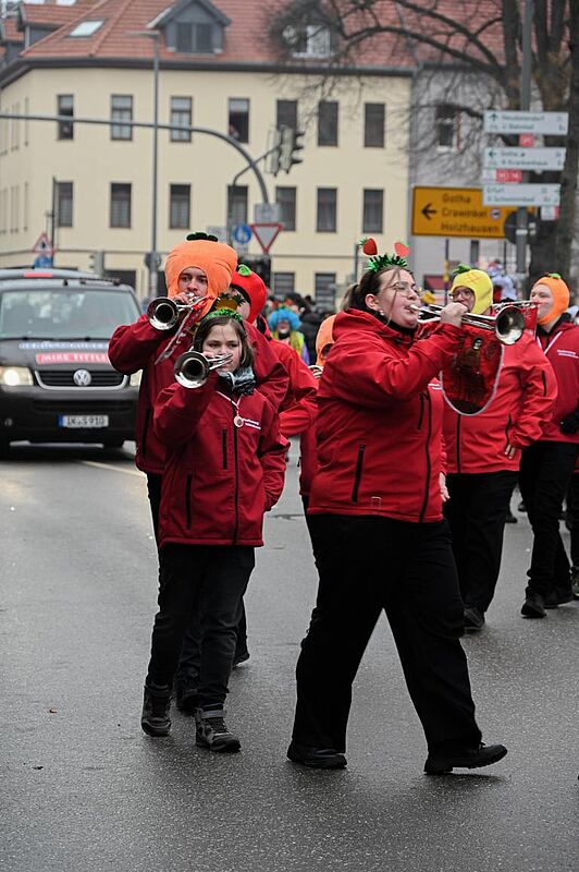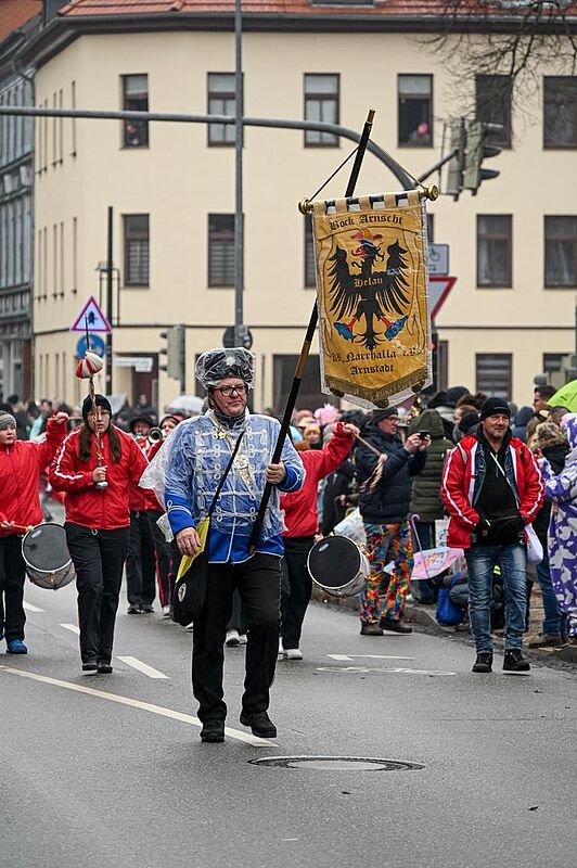 Trotz des nicht gerade narrenfreundlichen Wetters zog es wieder tausende Arnstädter und Gäste auf die Straße um die Wagen zu bestaunen und den Narren ihren Schlachtruf "Bock-Arnscht Helau!" entgegen zurufen. Als Dankeschön regnete es Süßigkeiten, Präsente und Blumen.