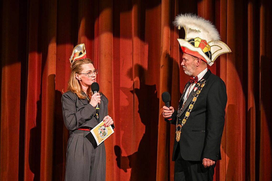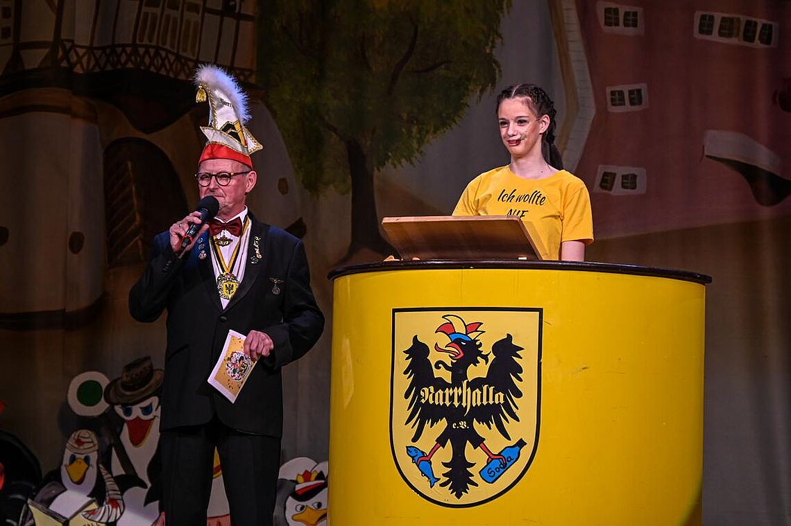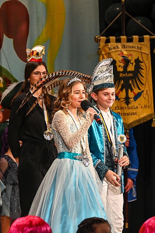 Ein Feuerwerk der guten Laune wurde zur 2.Festsitzung in der Arnstädter Stadthalle abgebrannt. Wunderbar moderiert von unserem Moderatorenteam Ulrike Wegmann & Norbert Fuchs war so einiges zu erleben, Emma stand wieder mit einer Bütt auf der Bühneund hat sich gefragt, "Warum Eltern immer so nerven?" und dass sie es gar nicht versteht, warum sie mit einem Kinderlied begrüßt wurde. Joanne in dieser Saison neu in der Bütt gab alles und rief in den Saal "Ich wollte nie erwachsen sein!" und den Reigen der Büttenredner beendeten Sigi & Norbert mit "Das leben nimmt auch ohne uns seinen Lauf - Pfeif drauf!"